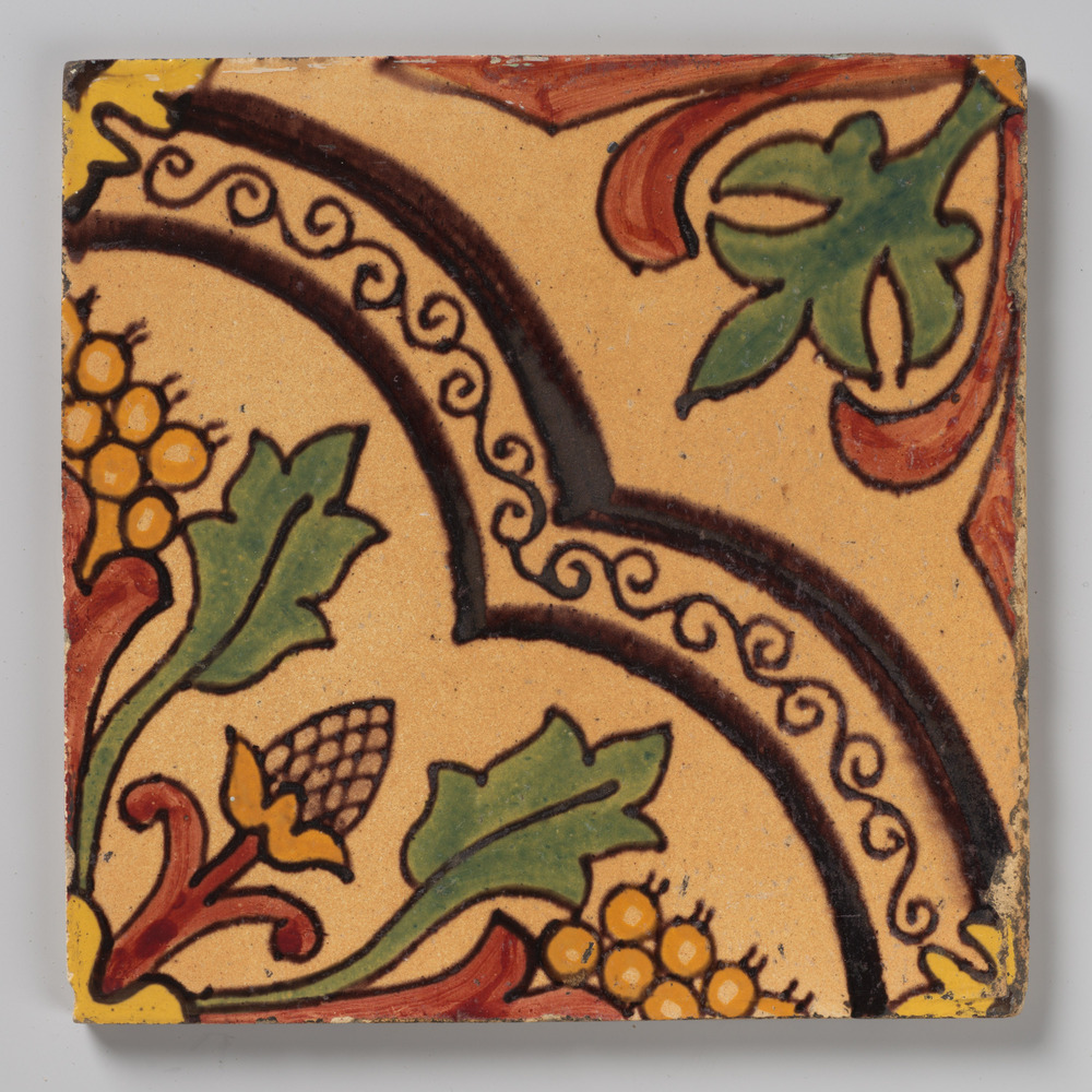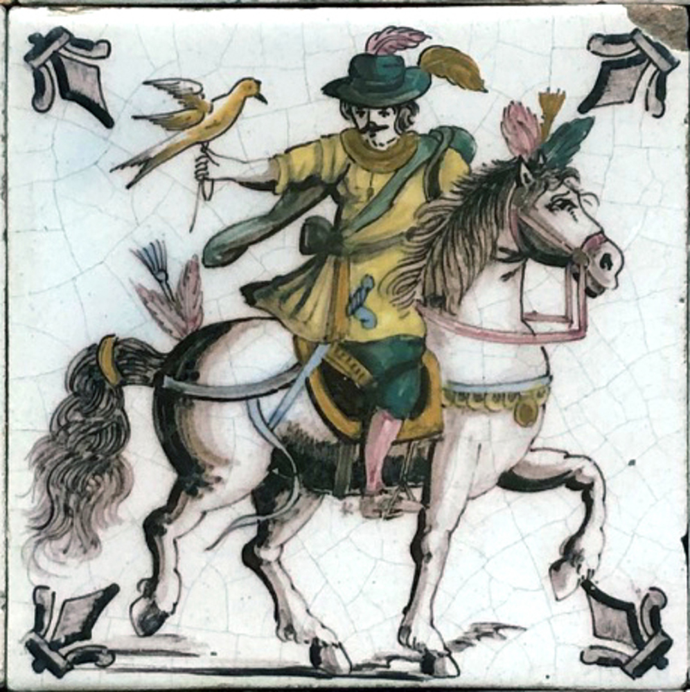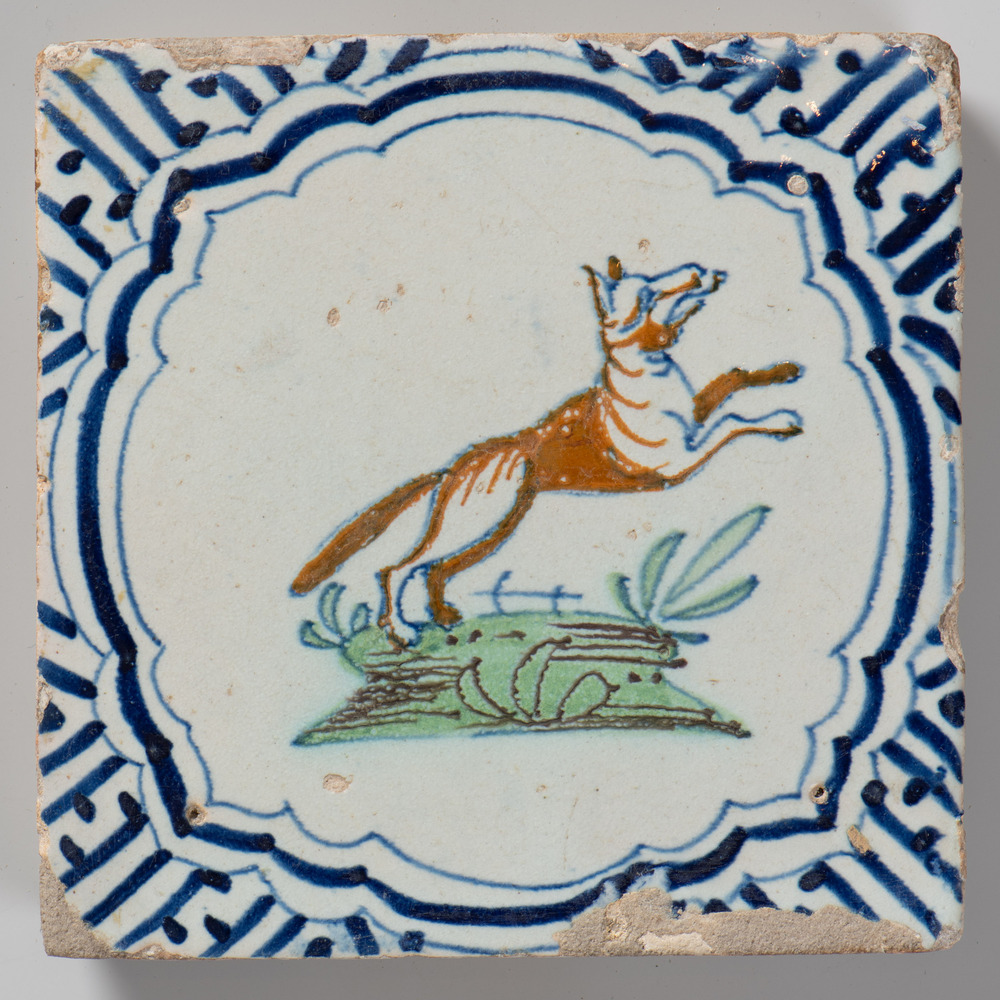 tegel van keramiek met tinglazuur, voorstellende: ru...