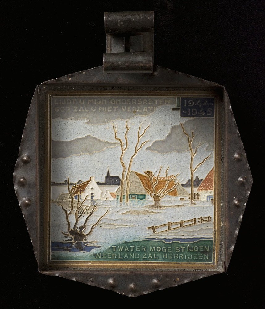Tegel in cloisonné-techniek, met voorstelling: inund...