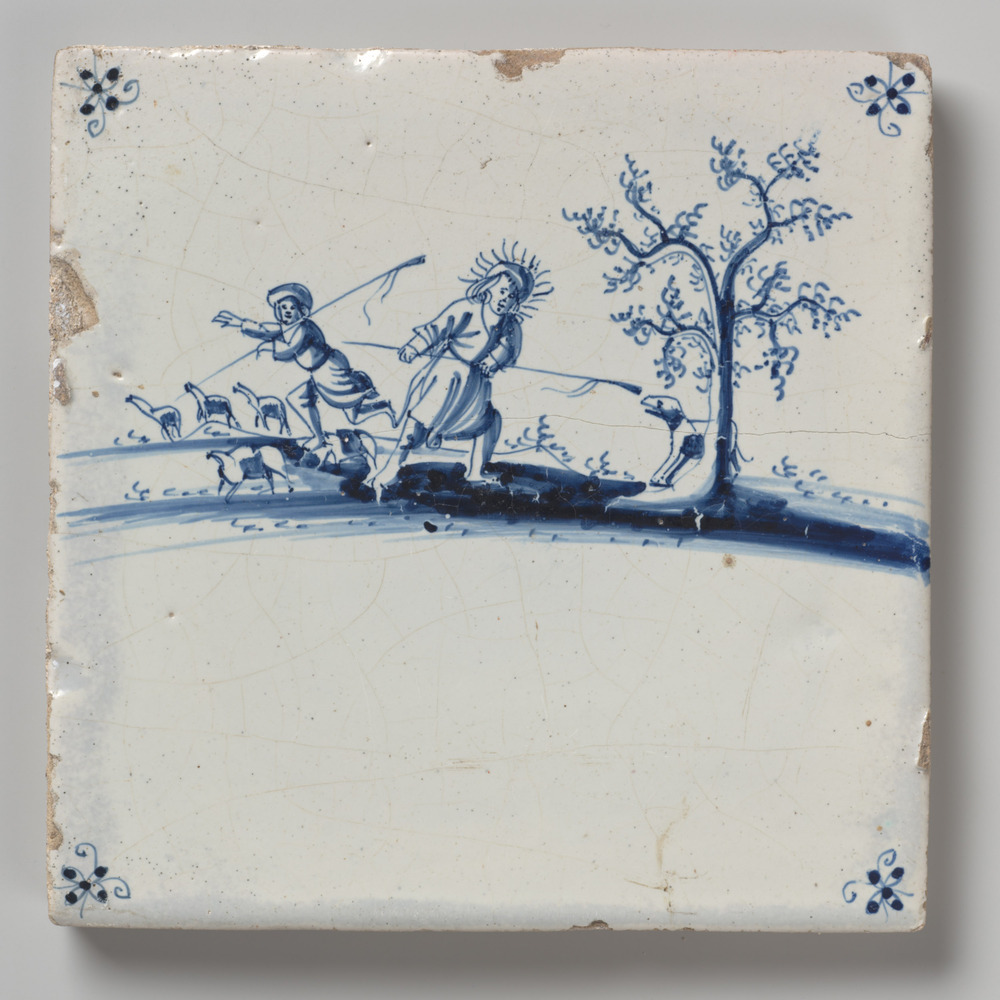 tegel van aardewerk met tinglazuur, voorstellende: h...