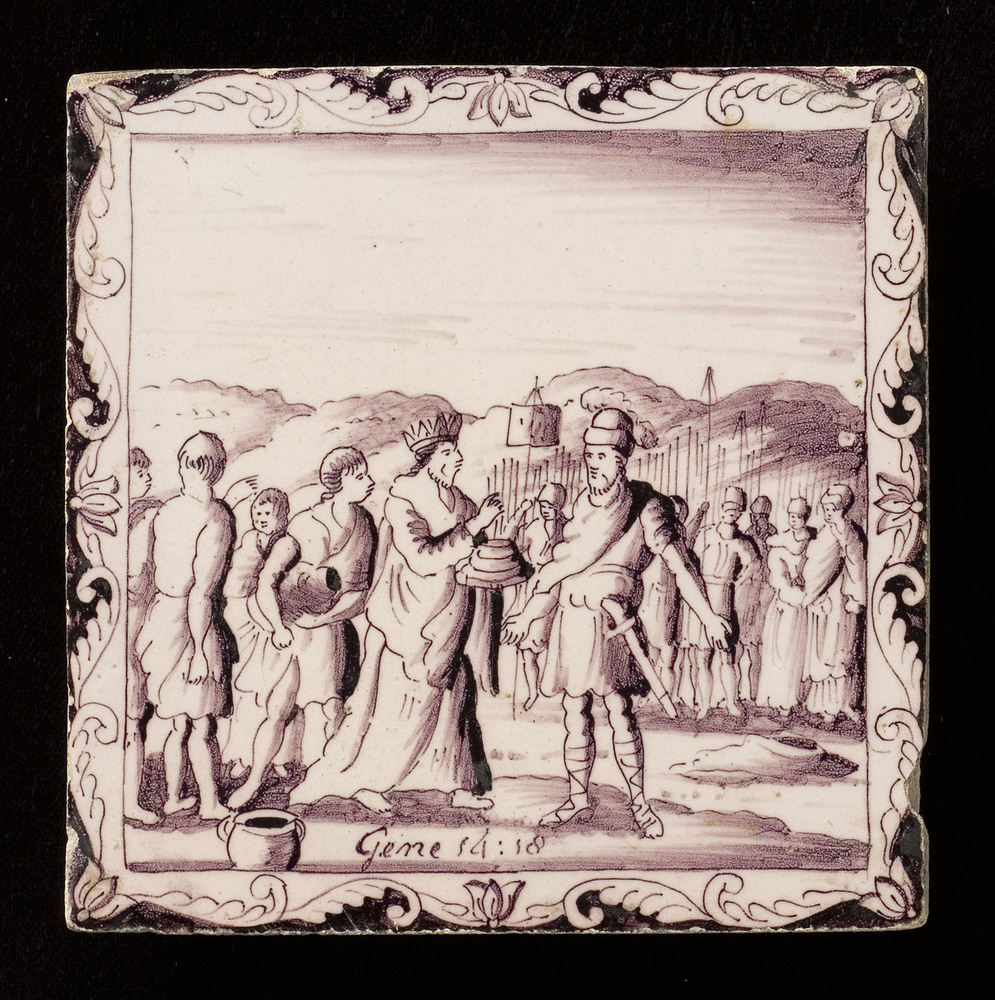 Tegel van keramiek met tinglazuur, voorstellende: Ab...