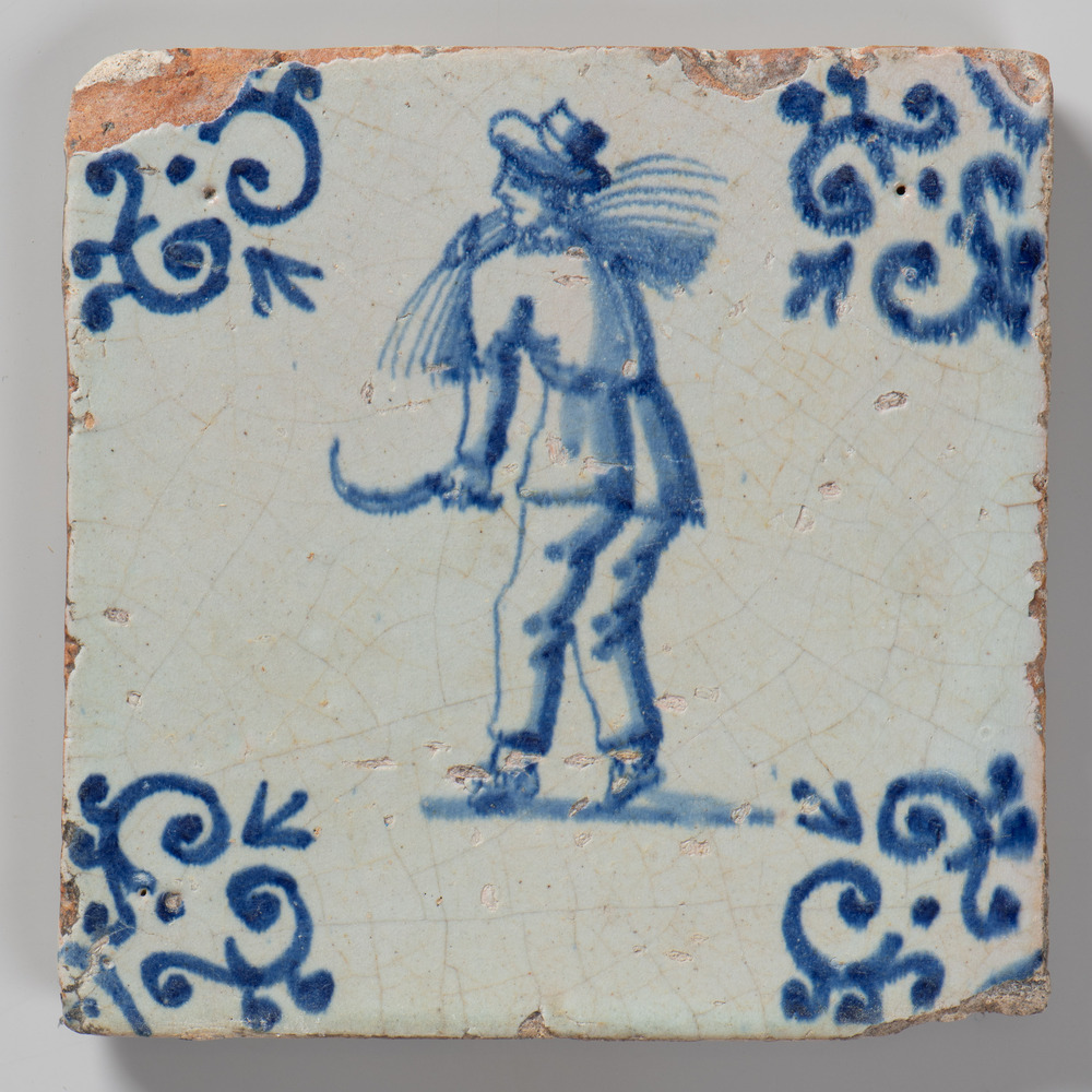 tegel van aardewerk met tinglazuur, voorstellende: m...