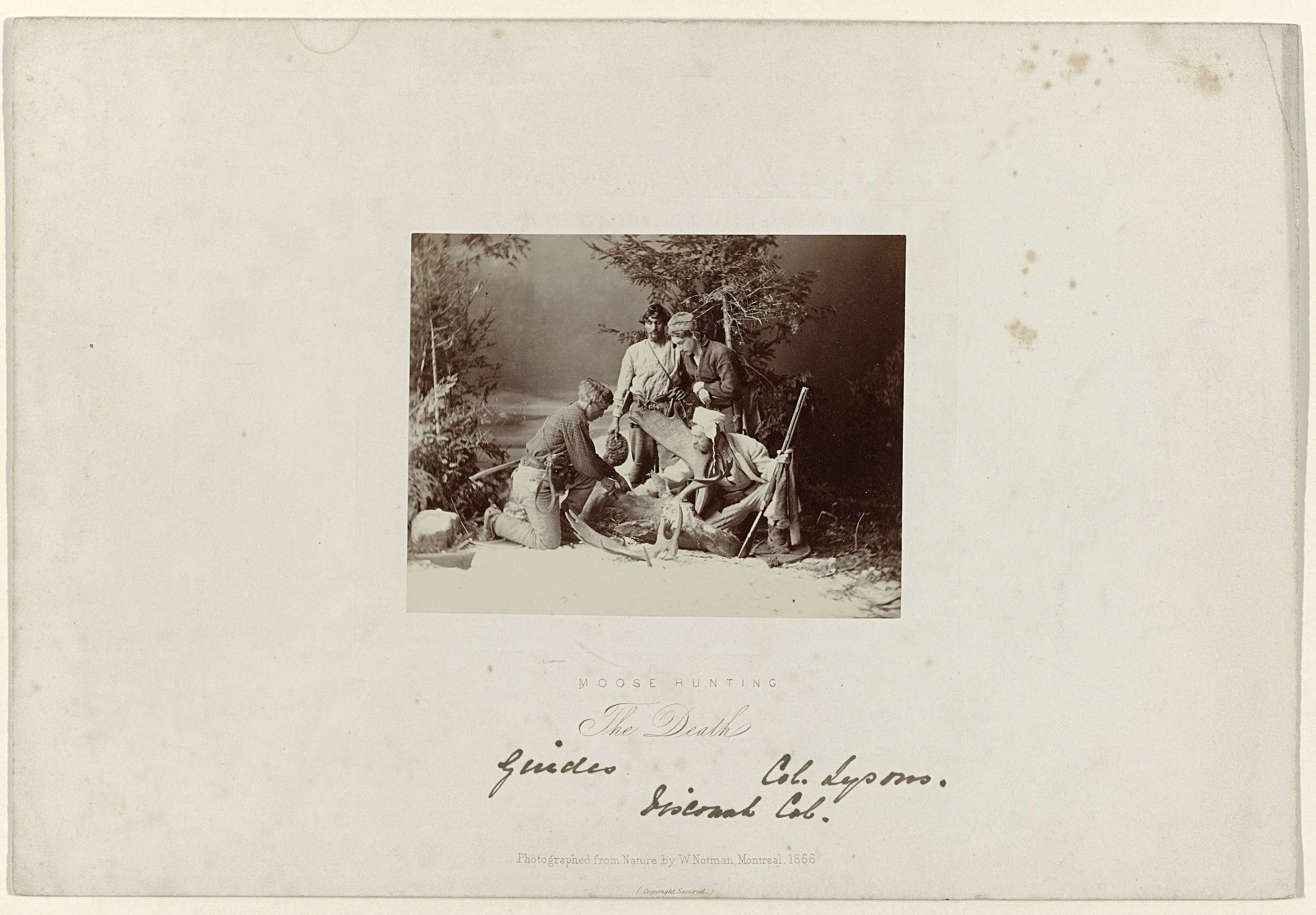 Jagers om een geschoten eland