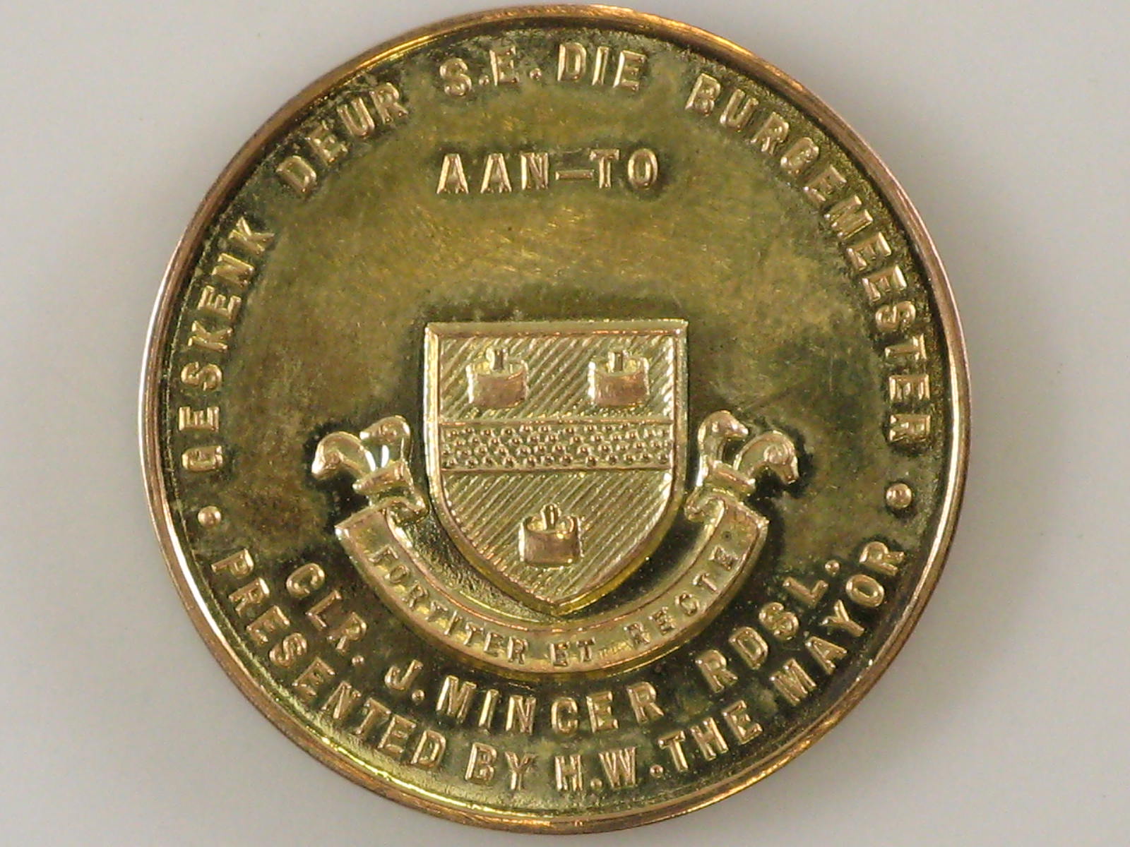 Penning geschonken door de burgemeester van Johannes...