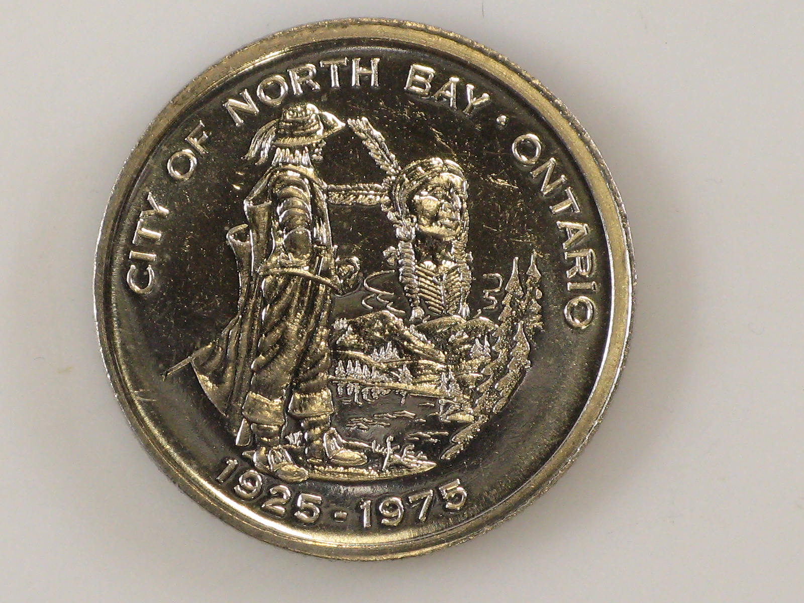 Twee penningen van de stad North Bay, Ontario (Canada)