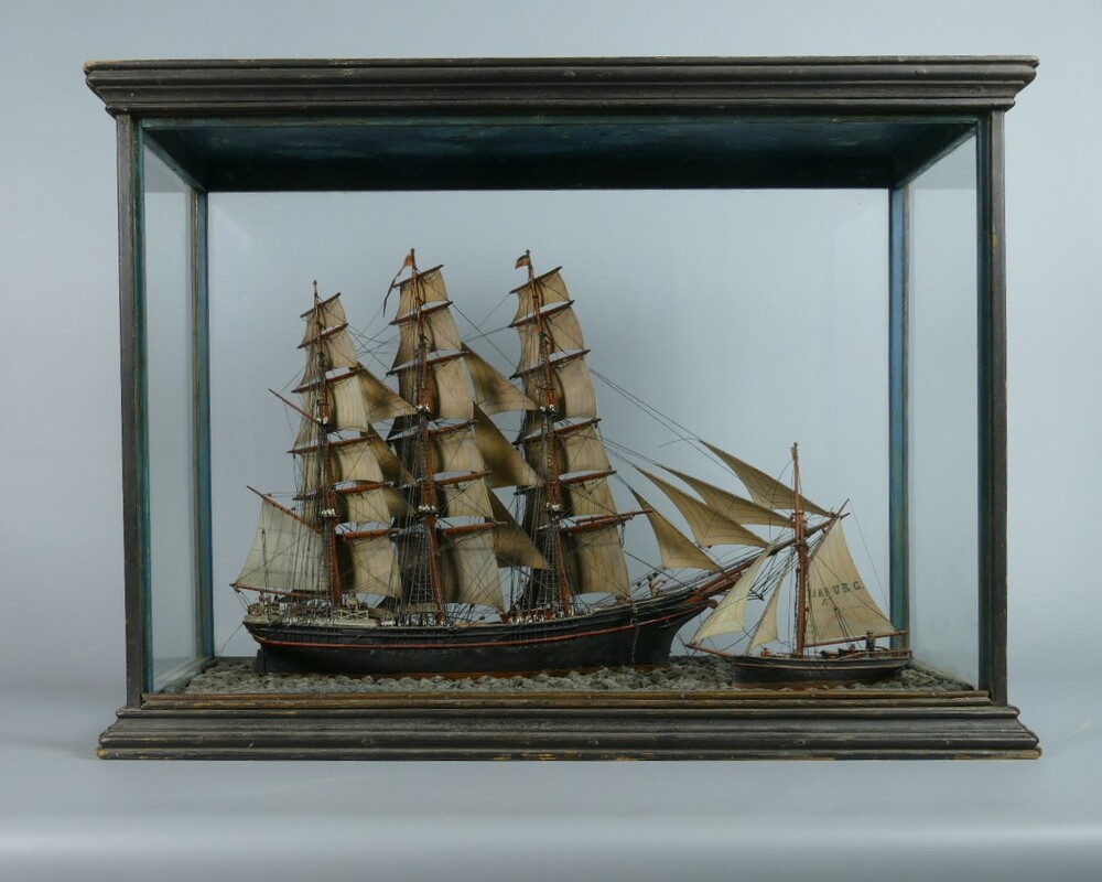 Modelschip in vitrine