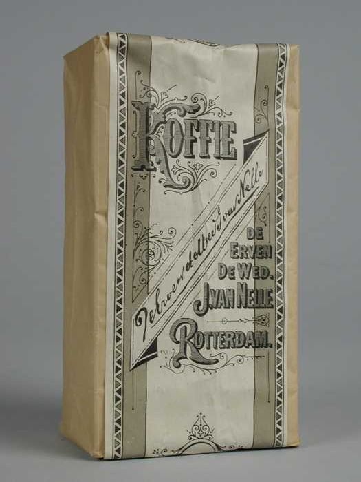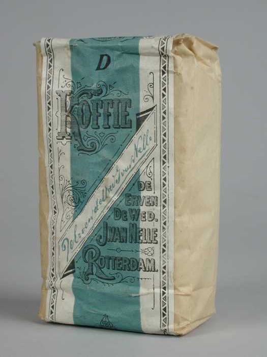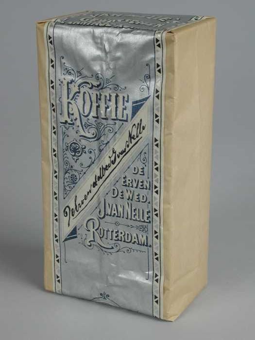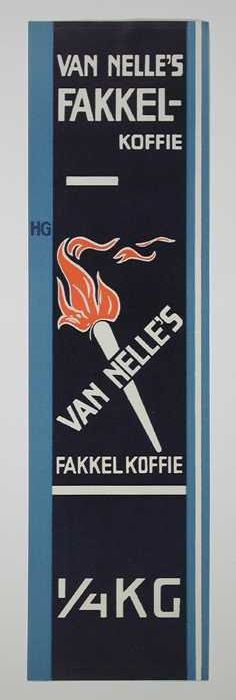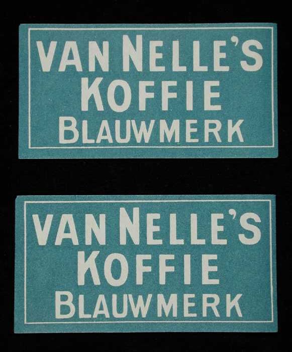 Blauw, papieren label VAN NELLE'S FAKKEL KOFFIE, HG,...