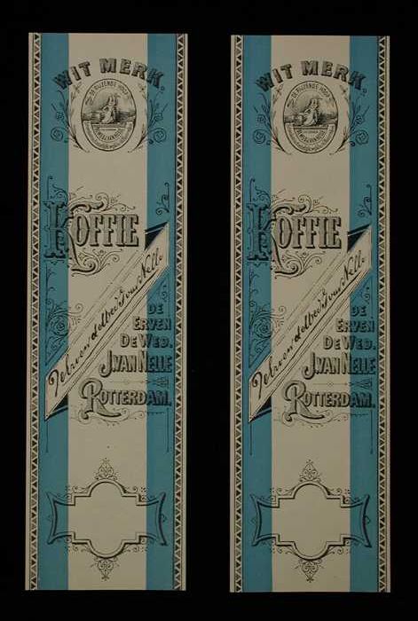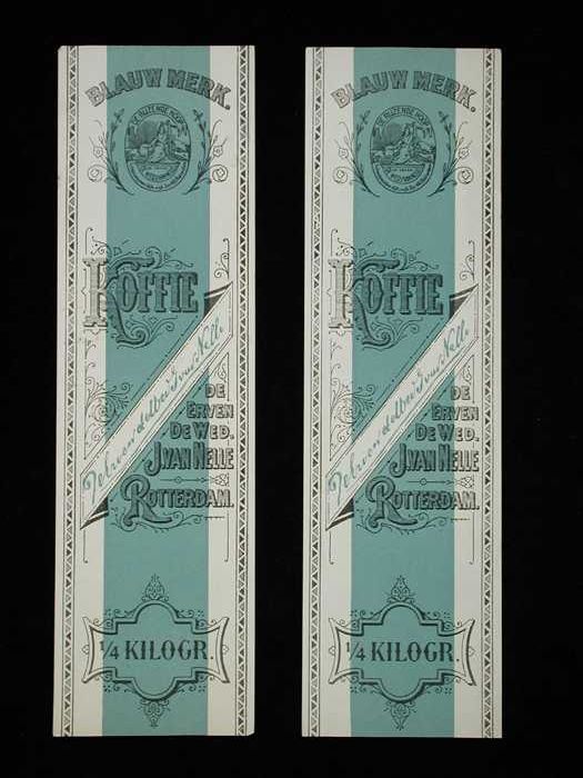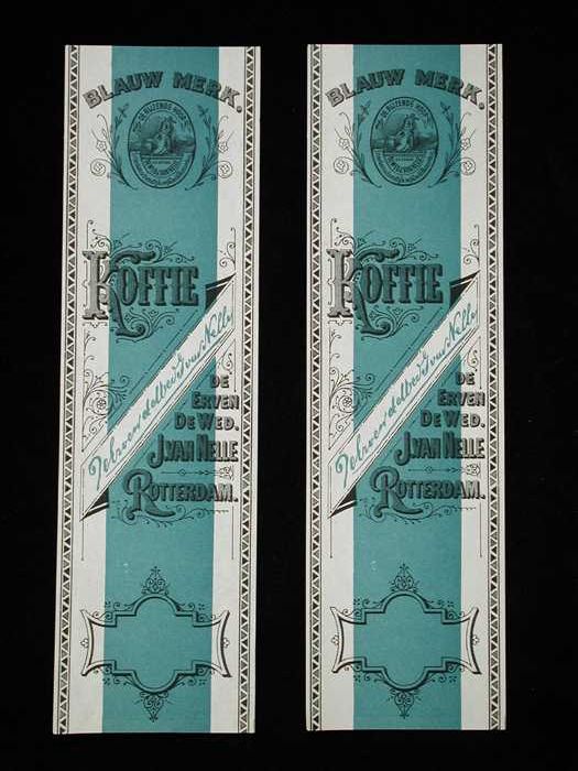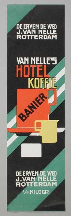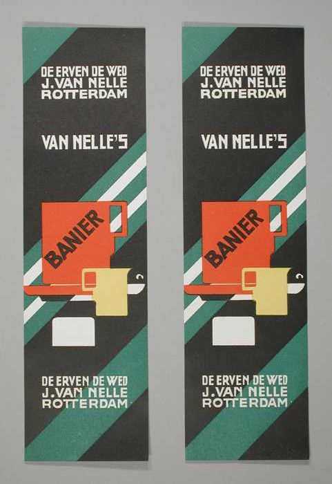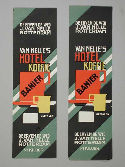 Twee papieren labels VAN NELLE'S BANIER KOFFIE, hote...