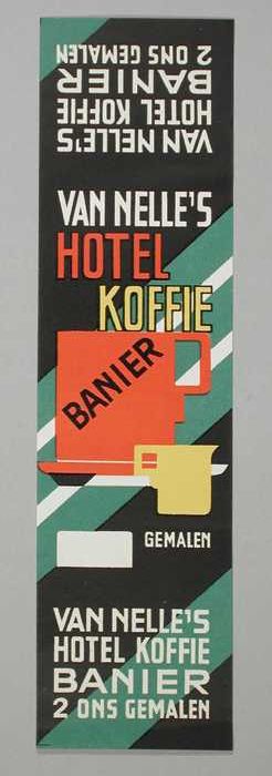 Papieren label VAN NELLE'S BANIER KOFFIE, hotel koff...