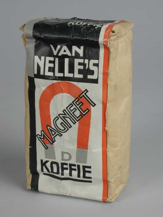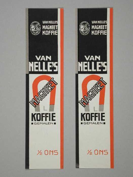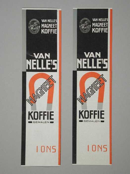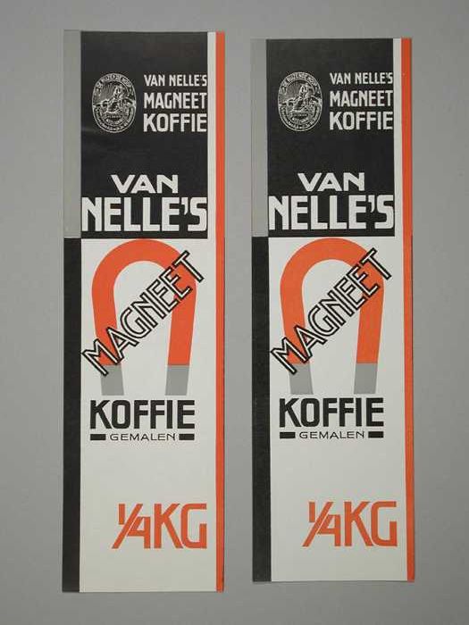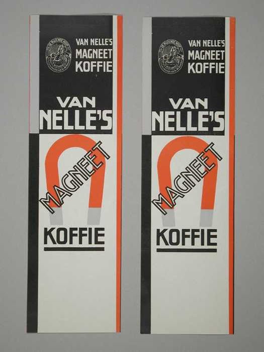 Twee papieren labels VAN NELLE'S MAGNEET KOFFIE, gem...