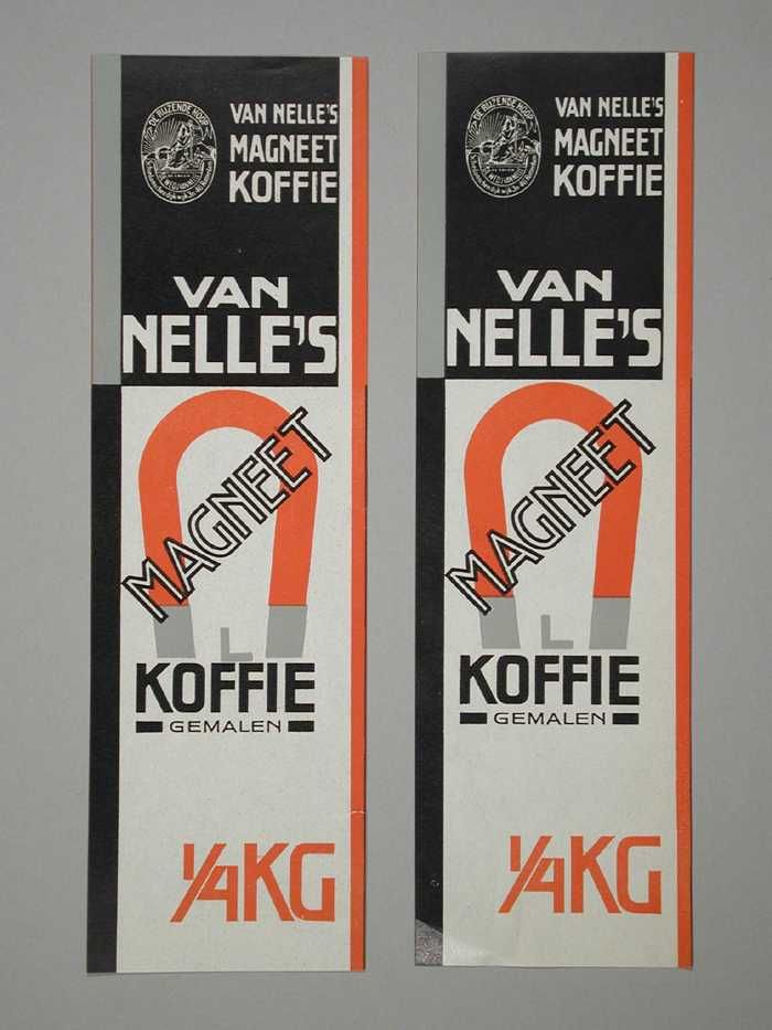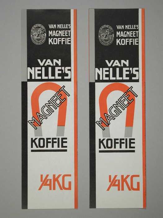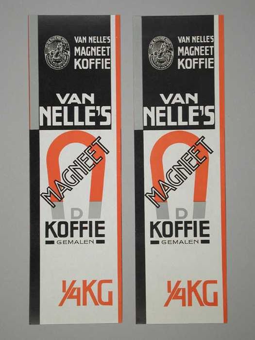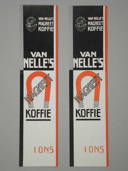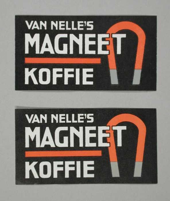 Twee papieren labels VAN NELLE'S MAGNEET KOFFIE