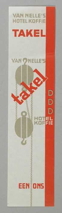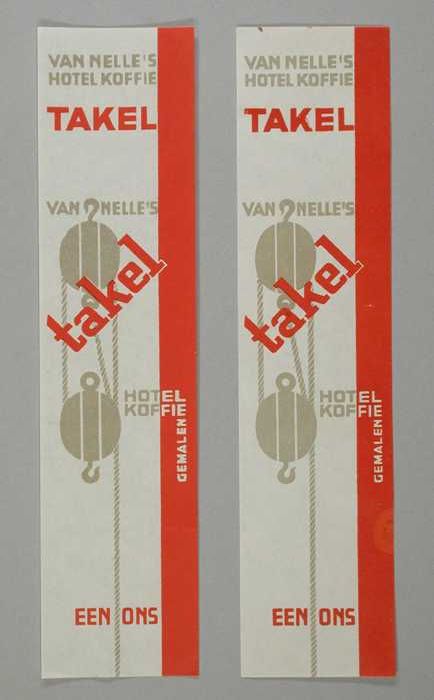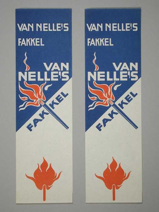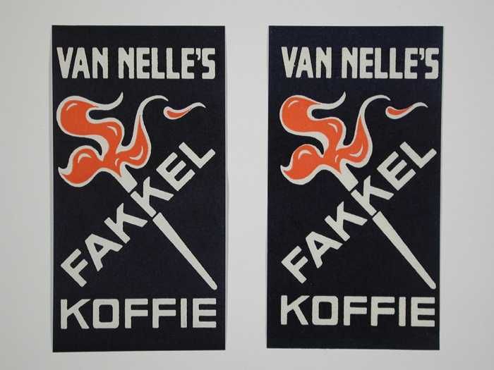Twee kleine, papieren labels VAN NELLE'S FAKKEL KOFFIE
