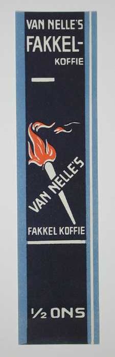 Blauw, papieren label VAN NELLE'S FAKKEL KOFFIE