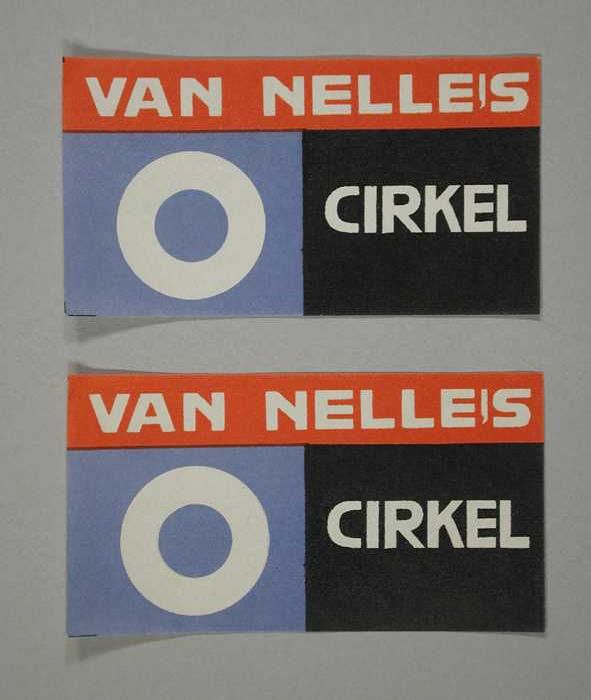 Twee kleine, papieren labels VAN NELLE'S CIRKEL KOFFIE