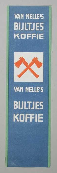 Blauw, papieren label VAN NELLE'S FAKKEL KOFFIE, D, ...