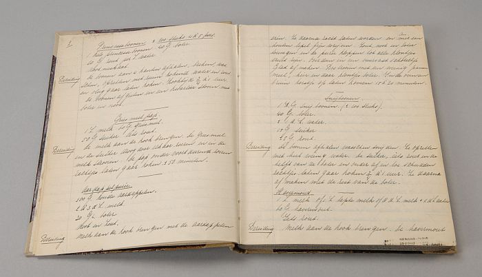 Kookboek "eenvoudige recepten" met omslag van geruit...