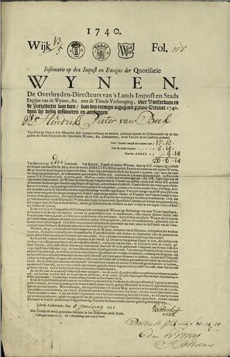 Aanslagbiljet, wijnaccijns, 1741