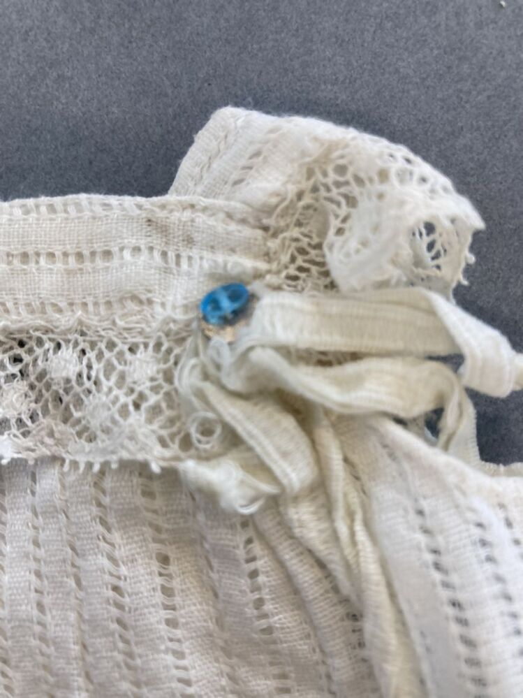 Boezelaar voor een pop, ajour gestreept katoen afgez...
