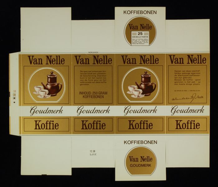 Wit en goud, kartonnen pak VAN NELLE GOUDMERK KOFFIE...