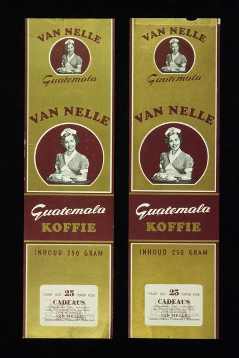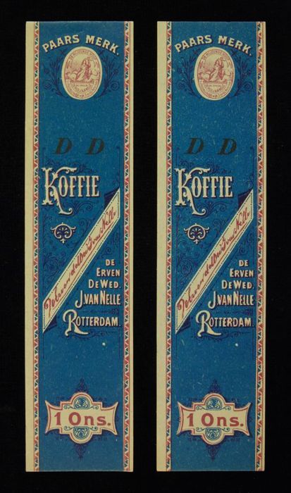 Twee blauwe labels VAN NELLE PAARSMERK KOFFIE, D D, ...