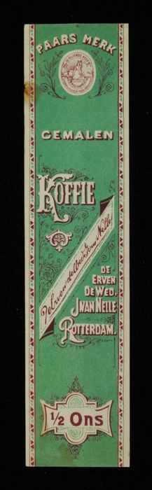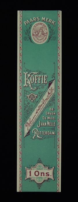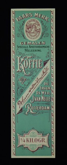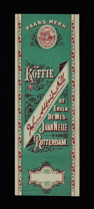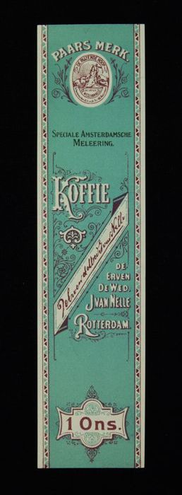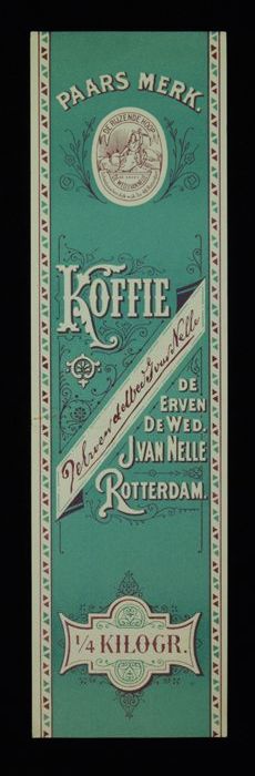 Blauw, papieren label VAN NELLE PAARSMERK KOFFIE, 25...