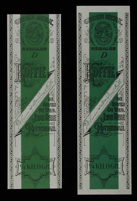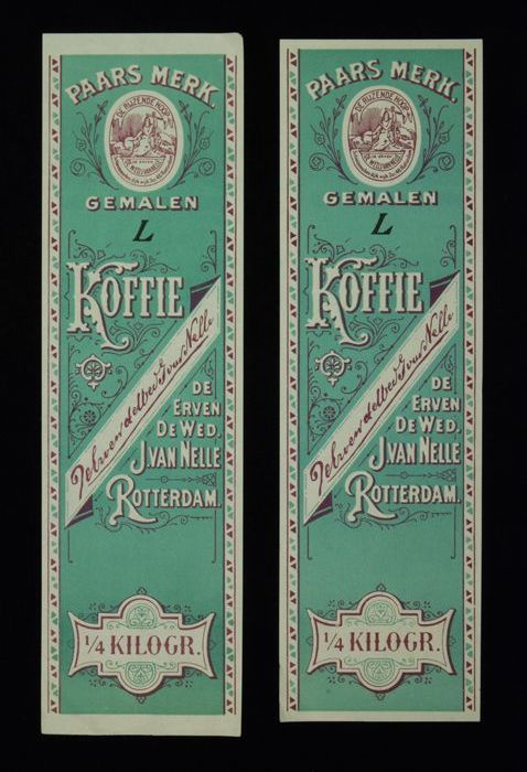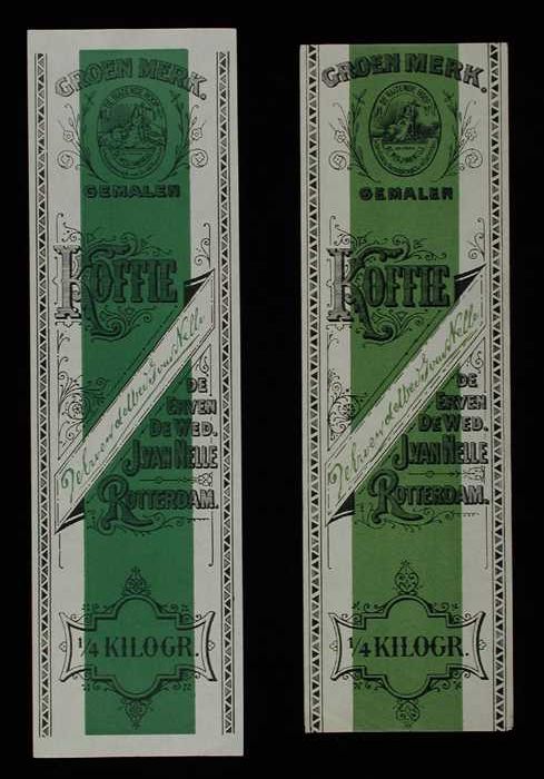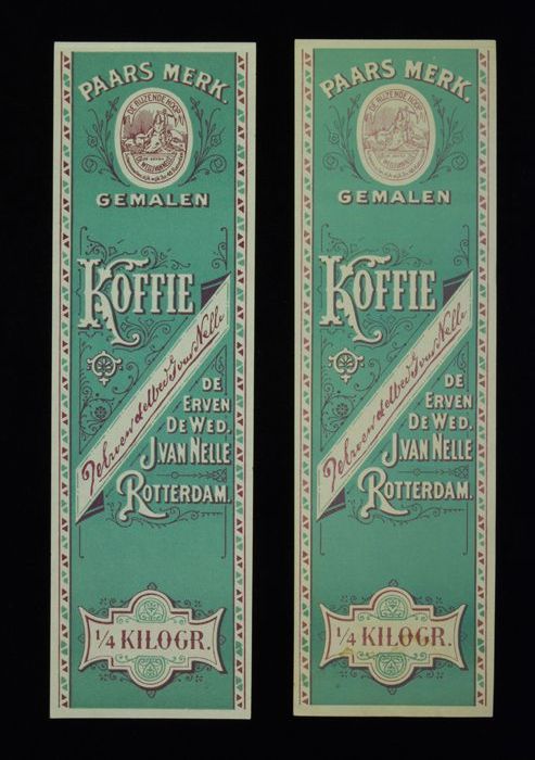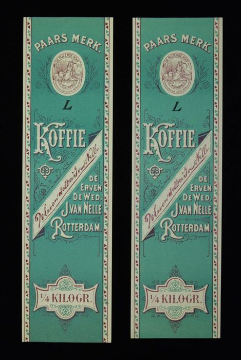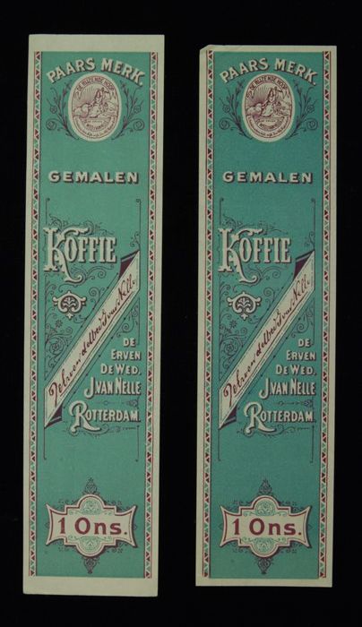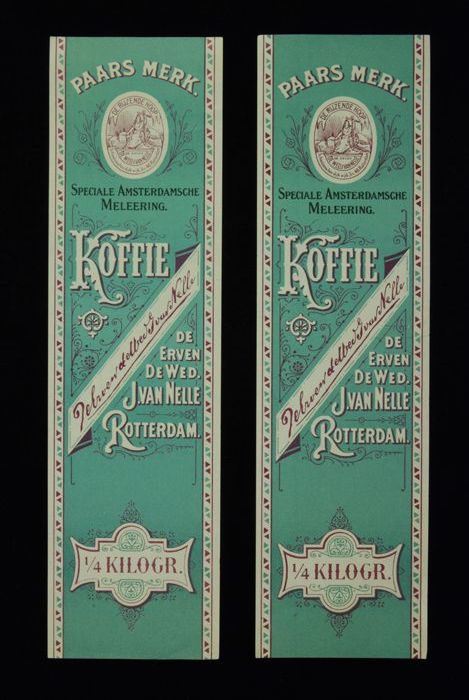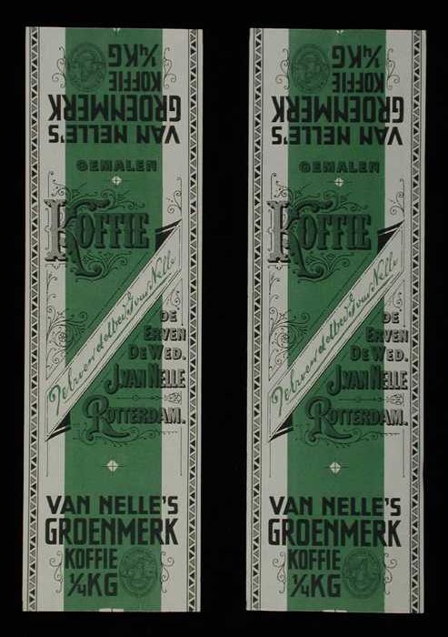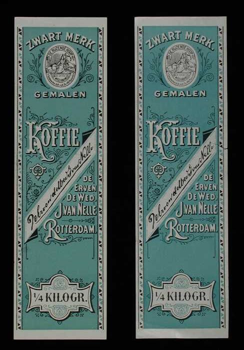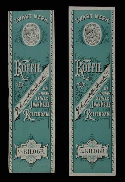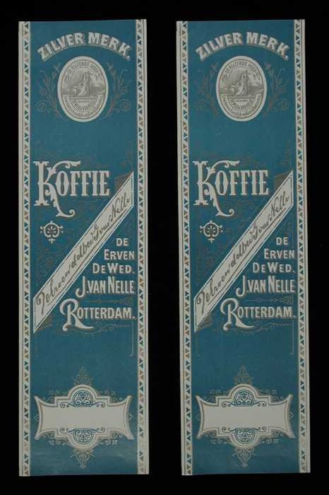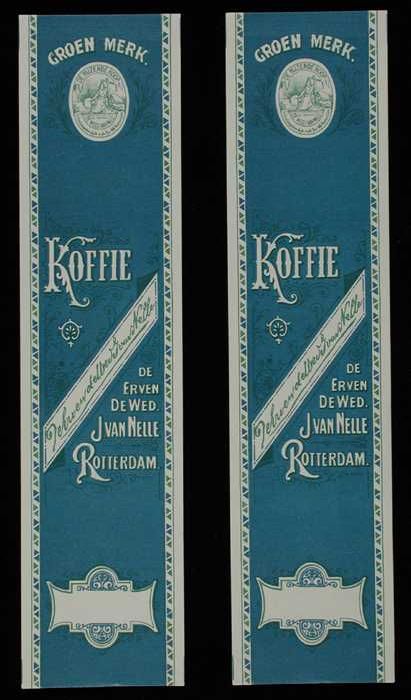 Twee blauwe labels VAN NELLE PAARSMERK KOFFIE, speci...