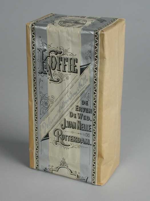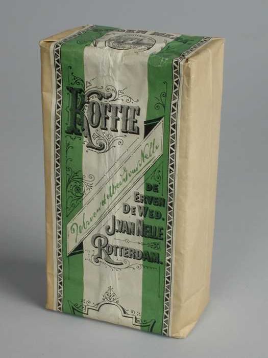 Wit papieren pak VAN NELLE PAARSMERK KOFFIE, met een...