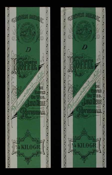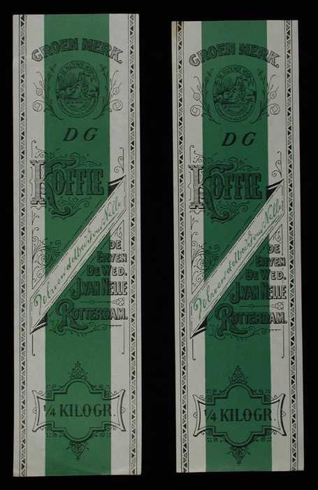 Twee wit met groene, papieren labels VAN NELLE'S GRO...