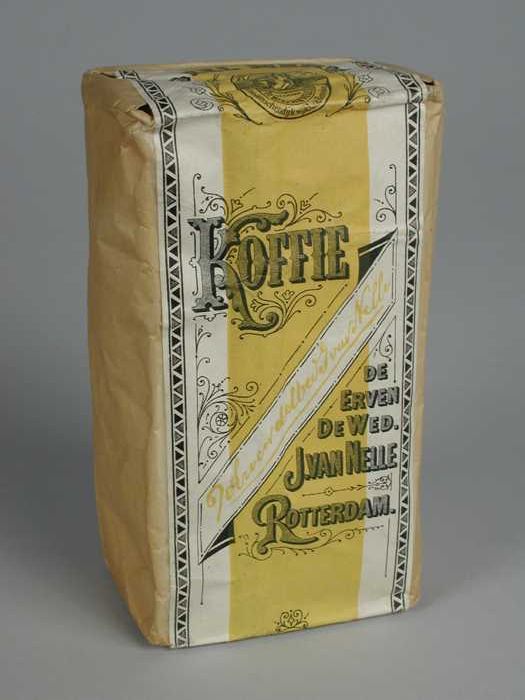Bruin, papieren wikkel waarin gele labels VAN NELLE ...