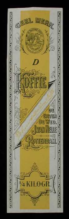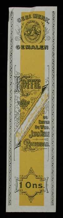 Wit en geel, papieren label VAN NELLE GEELMERK KOFFI...