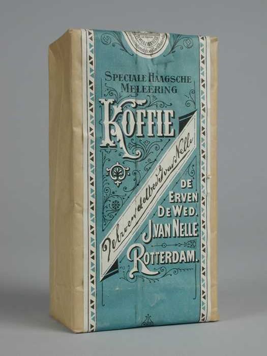 Wit papieren pak VAN NELLE GEELMERK KOFFIE, met een ...