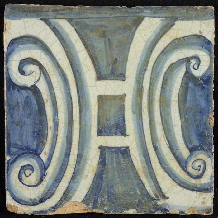 Tegel van schoorsteenpilaster, blauw op wit, deel va...