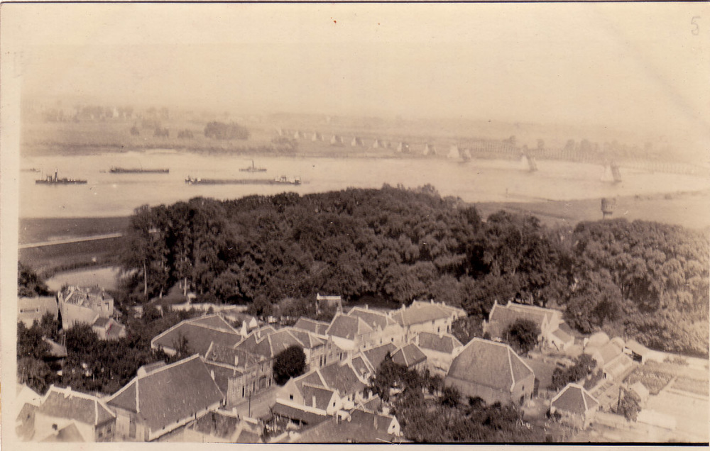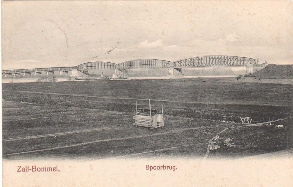 Zaltbommel, spoorbrug met strand.