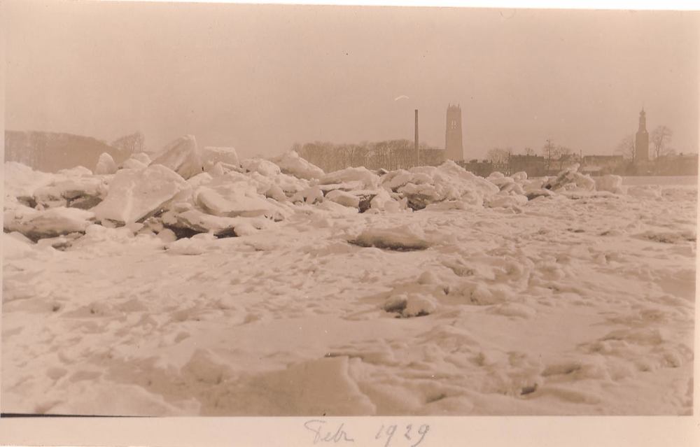 Dicht gevroren waal bij Zaltbommel 1929.