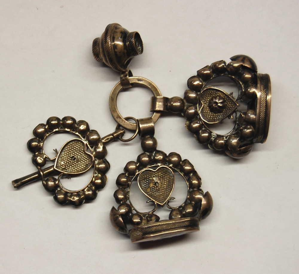signetten en horlogesleutel van zilver met decoratie...