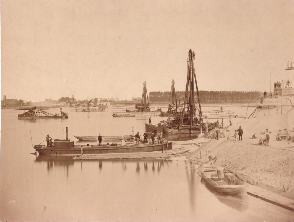 Bouw van de spoorbrug bij Zaltbommel 16 oktober 1866