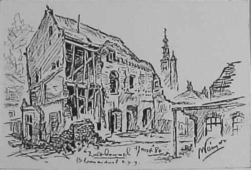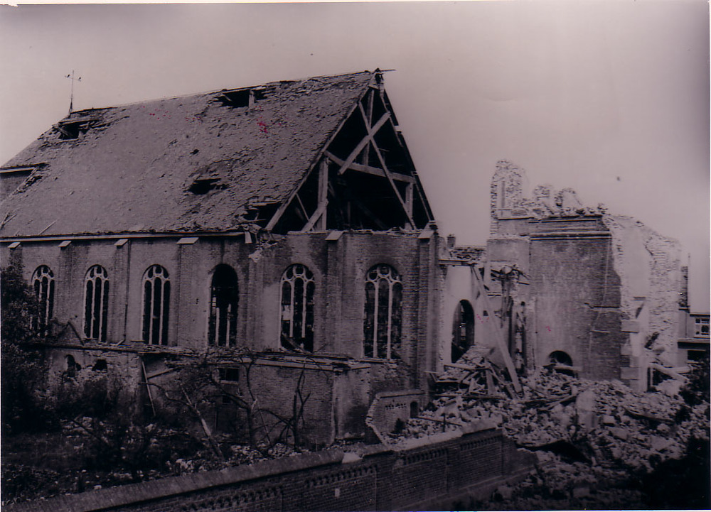 Verwoeste RK kerk te Kerkdriel.