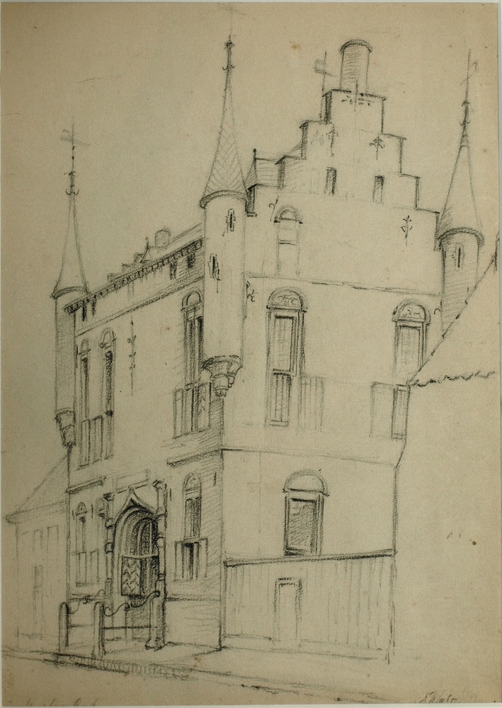 Krijttekening van het huis van Maarten van Rossem in...