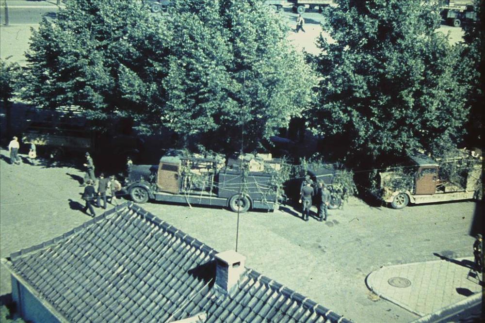 Drie verzetsmensen in onderduikershol met veel dinge...