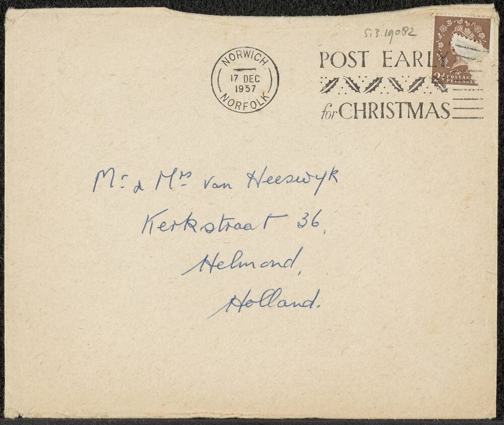 Envelop, geadresseerd aan mr. & mrs. van Heeswijk, d...