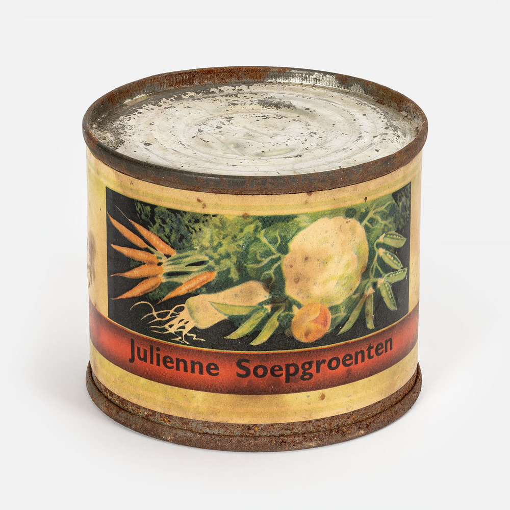 conservenblik, noodvoorraad, WO2, soepgroenten