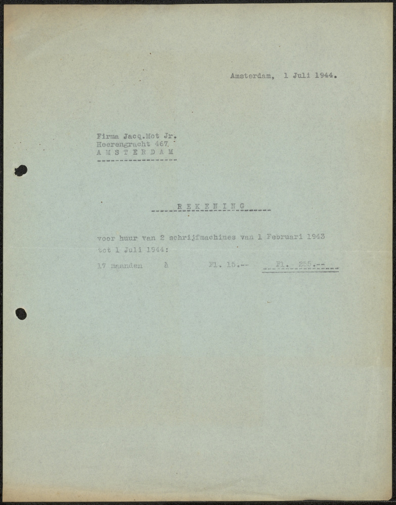 Nota van Firma Jacq Mot Jr. 1 juli 1944