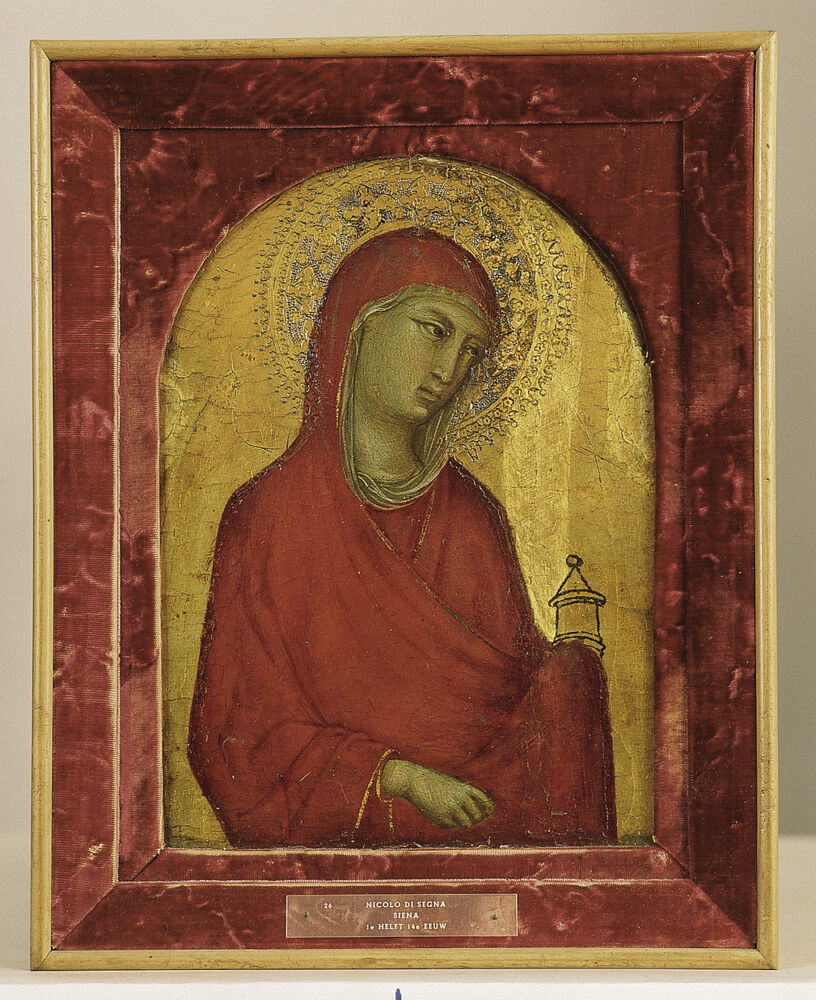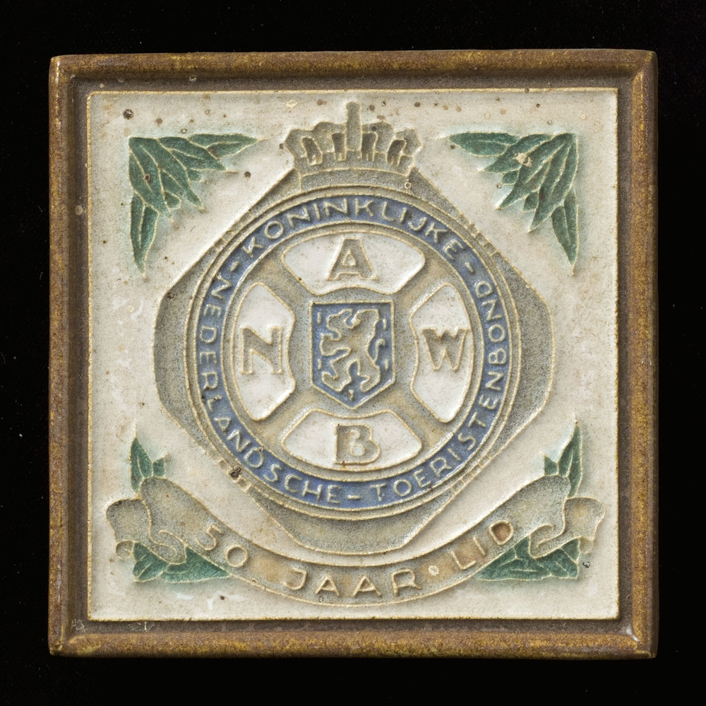 Tegel van keramiek met tinglazuur, voorstellende: or...