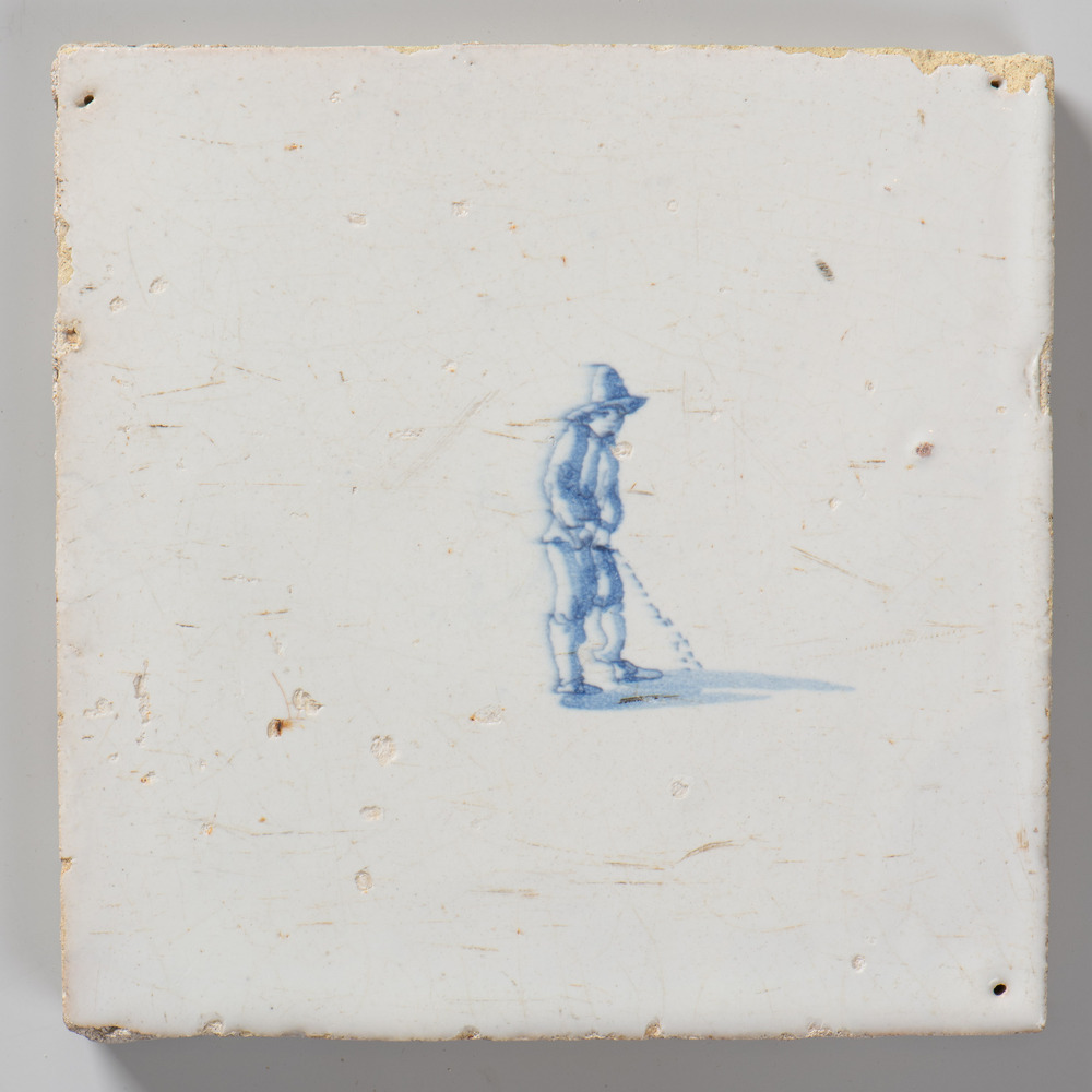 tegel van aardewerk met tinglazuur, voorstellende: p...