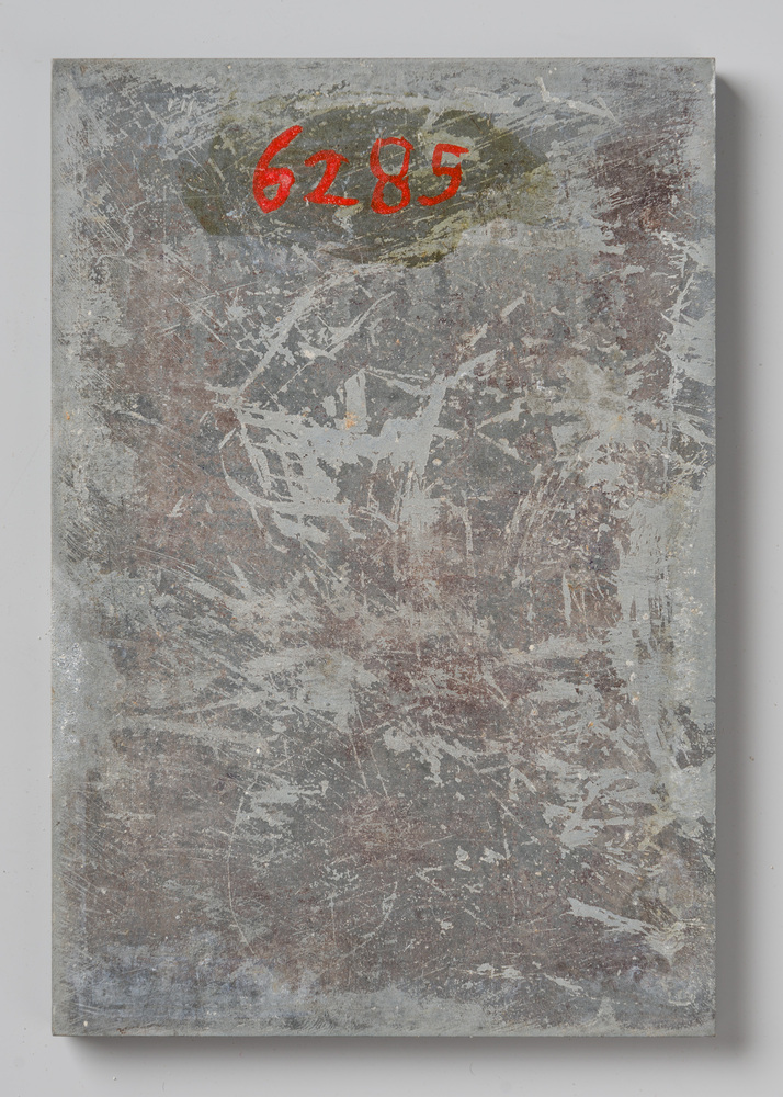 Tegel in tinglazuur, voorstellende blad met oog, ver...