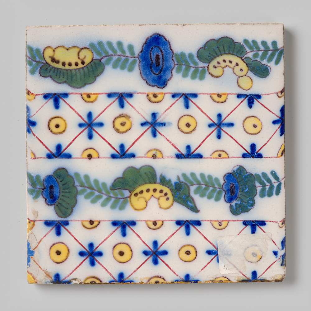 tegel van aardewerk met tinglazuur, voorstellende: t...