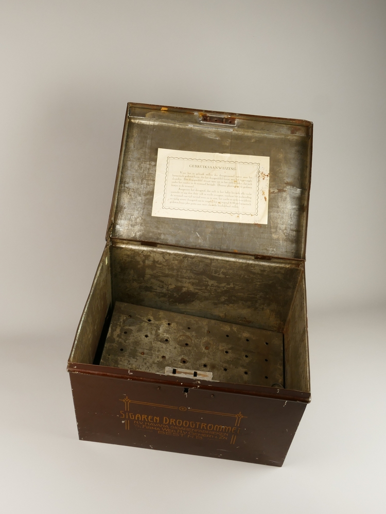 metalen droogtrommel voor sigaren, geassocieerd met ...