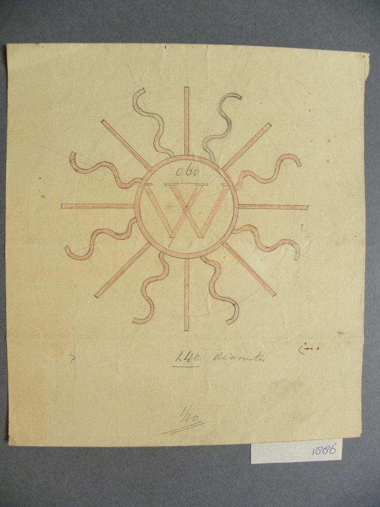 Plattegronden, op papier getekend en ingekleurd, voo...