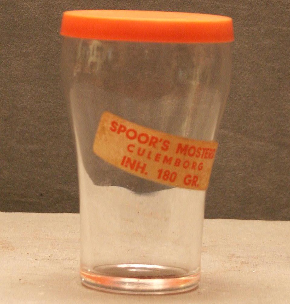 Mosterdglas voorzien van etiket Spoor's Mosterd uit ...