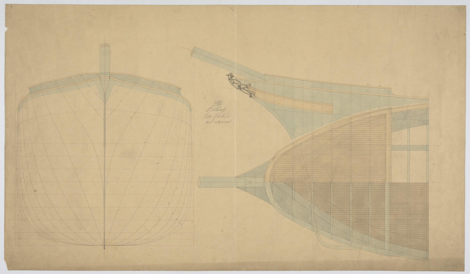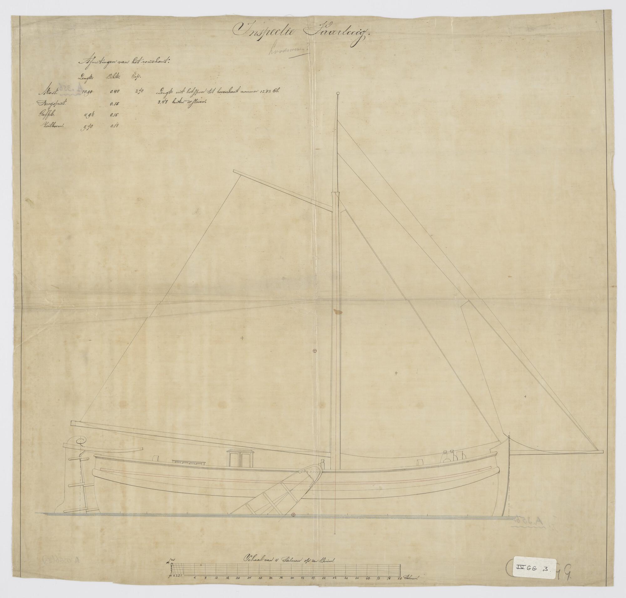 Lijnenplan 1852 en 1863 en tuigplan van het schoener...