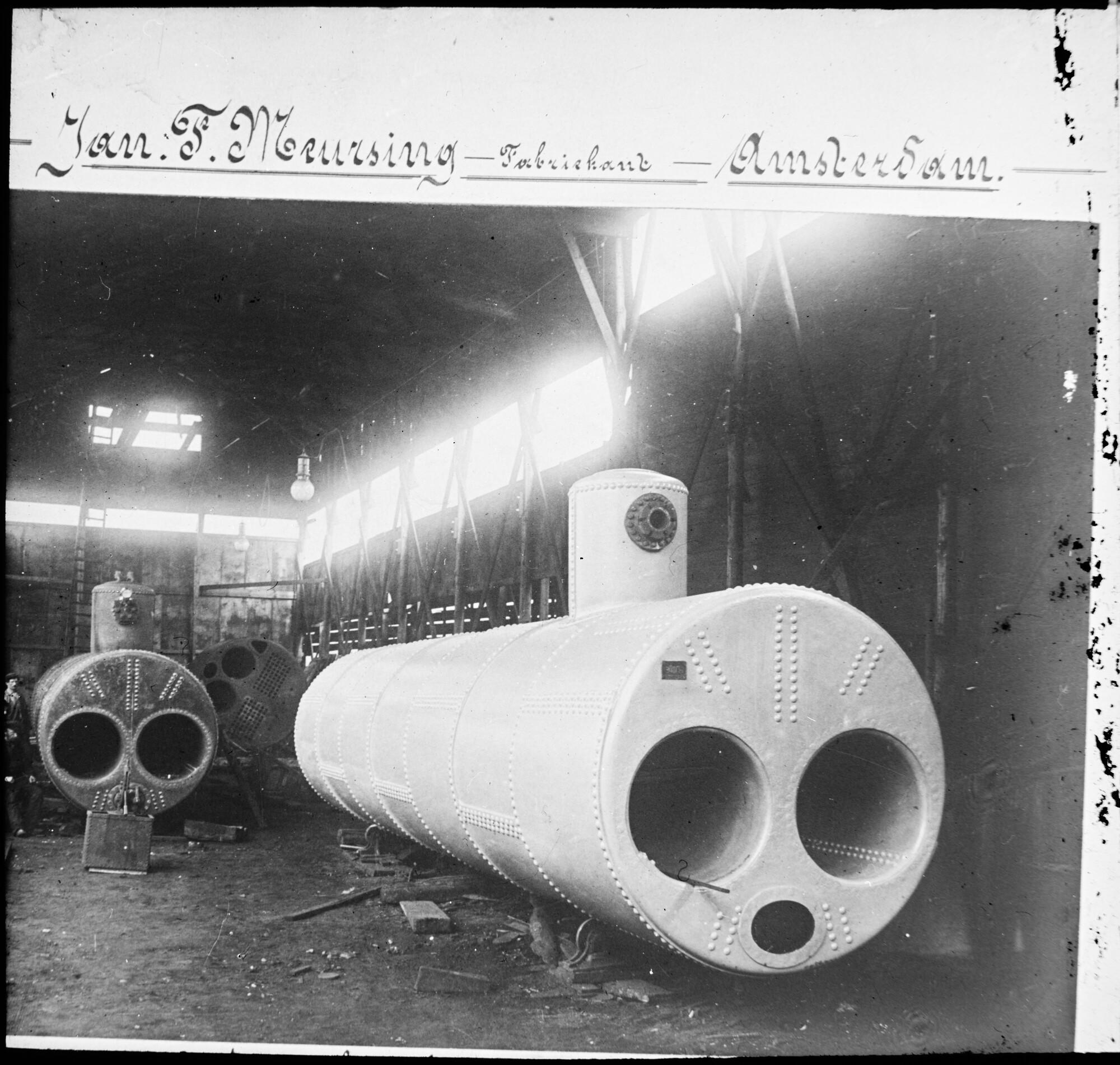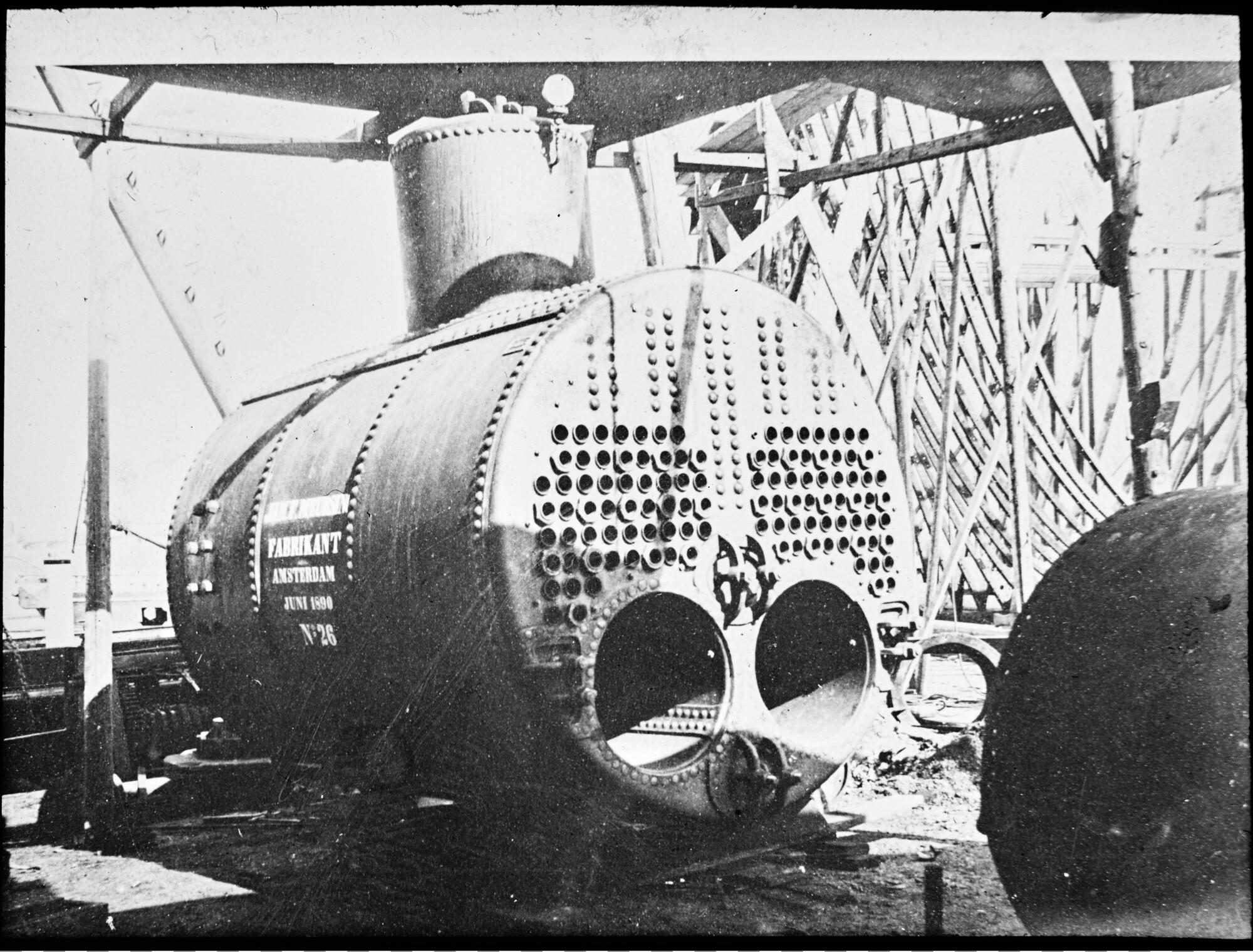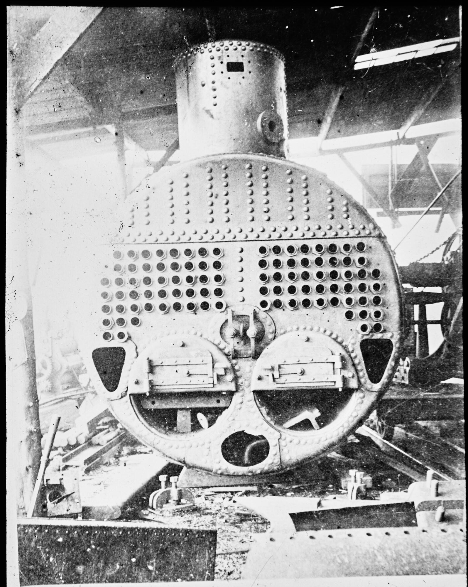 Lantaarnplaatje van ketelonderdelen voor het stoomge...